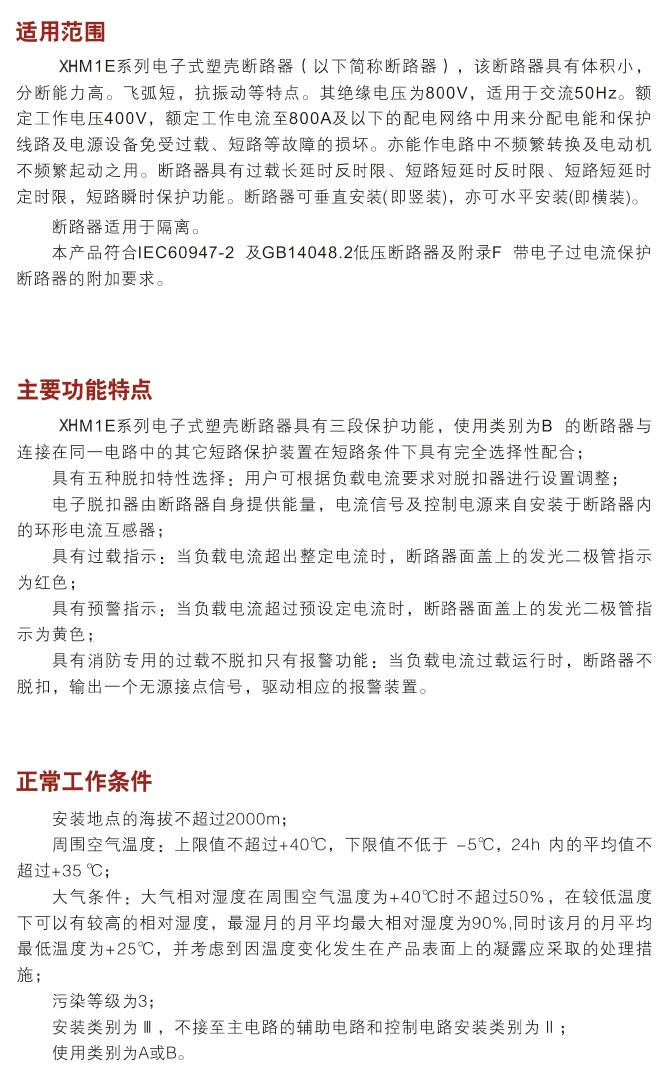 XHM1E系列电子式塑壳断路器