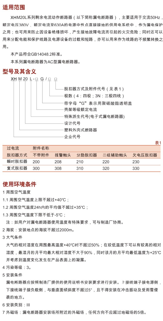 XHM20L系列漏电断路器